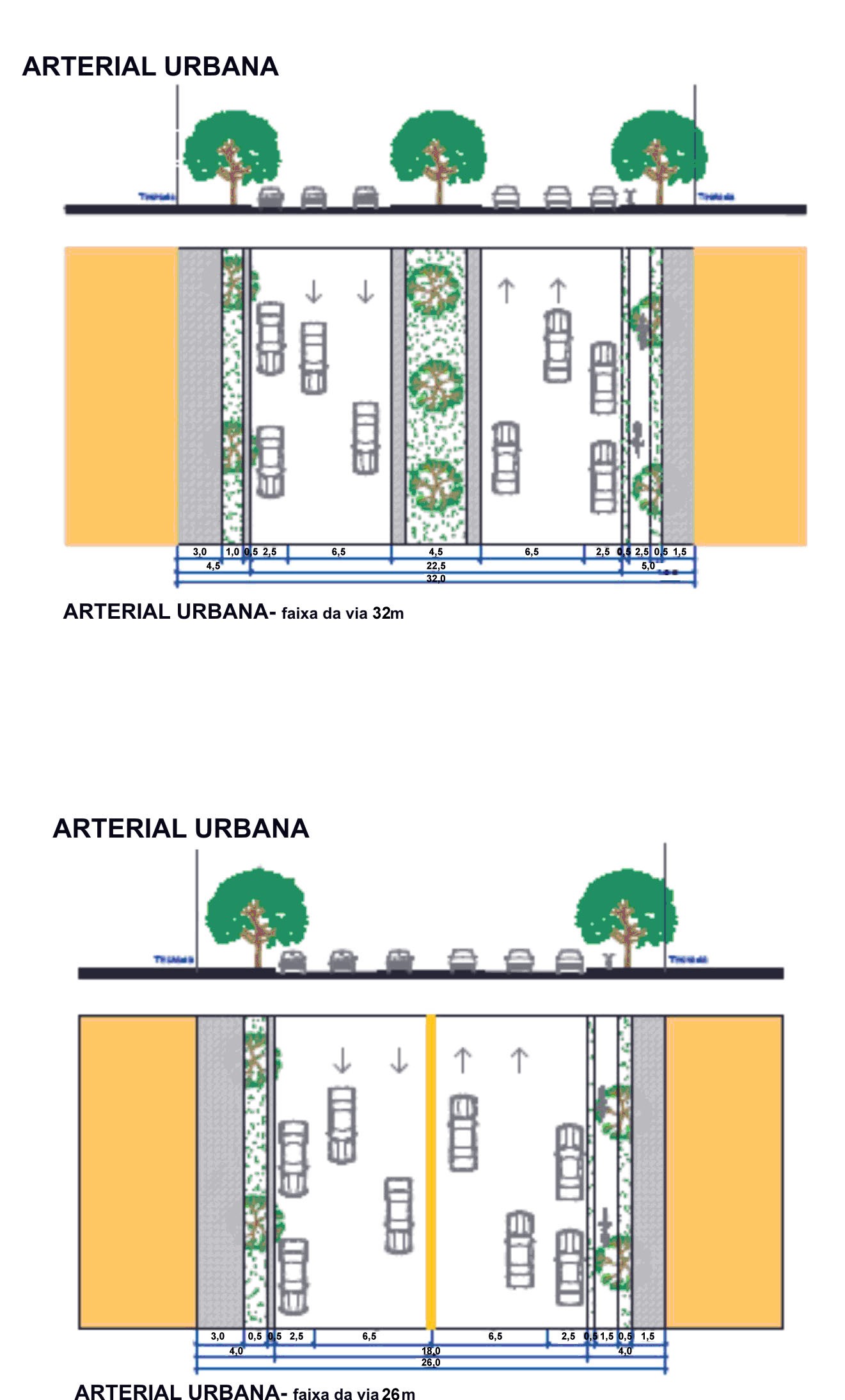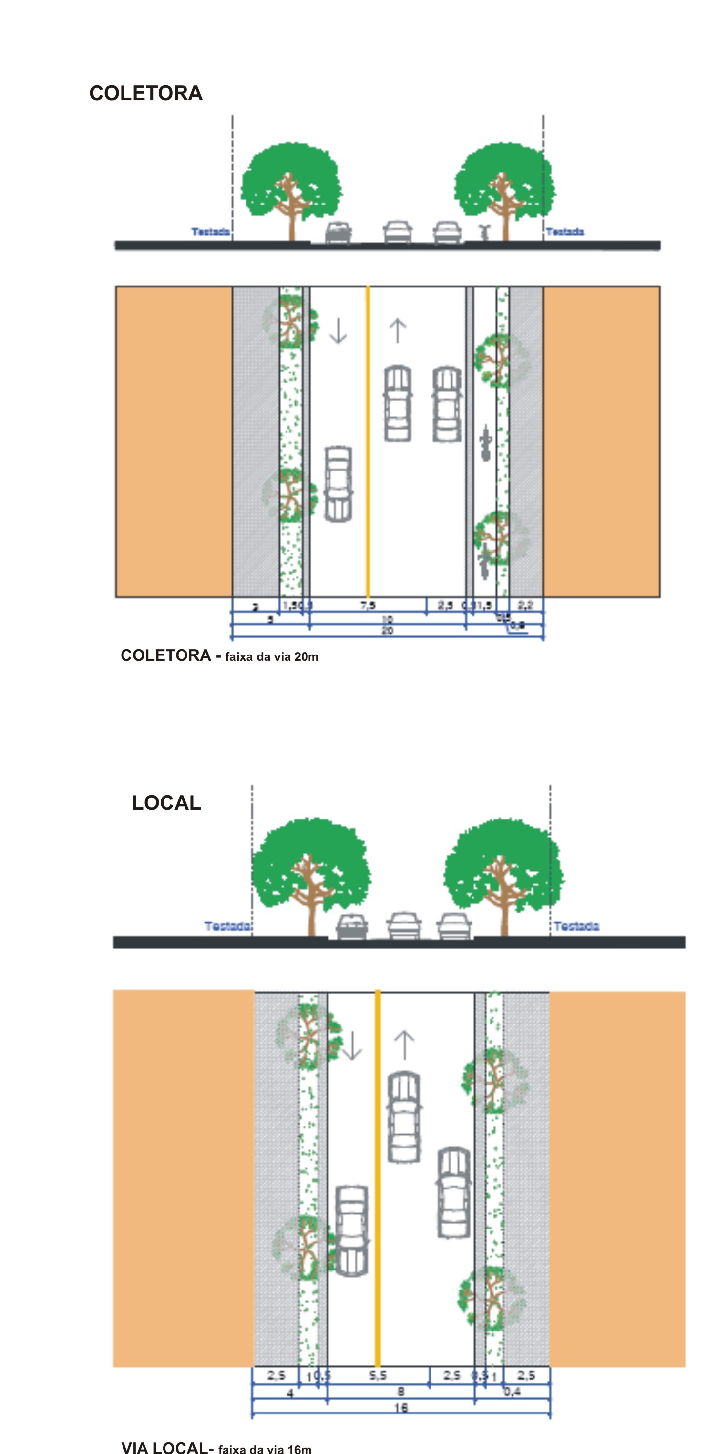 - Área e Testada de Lote: Estabelece as dimensões quanto à superfície e o comprimento da frente do lote para o parcelamento do solo.